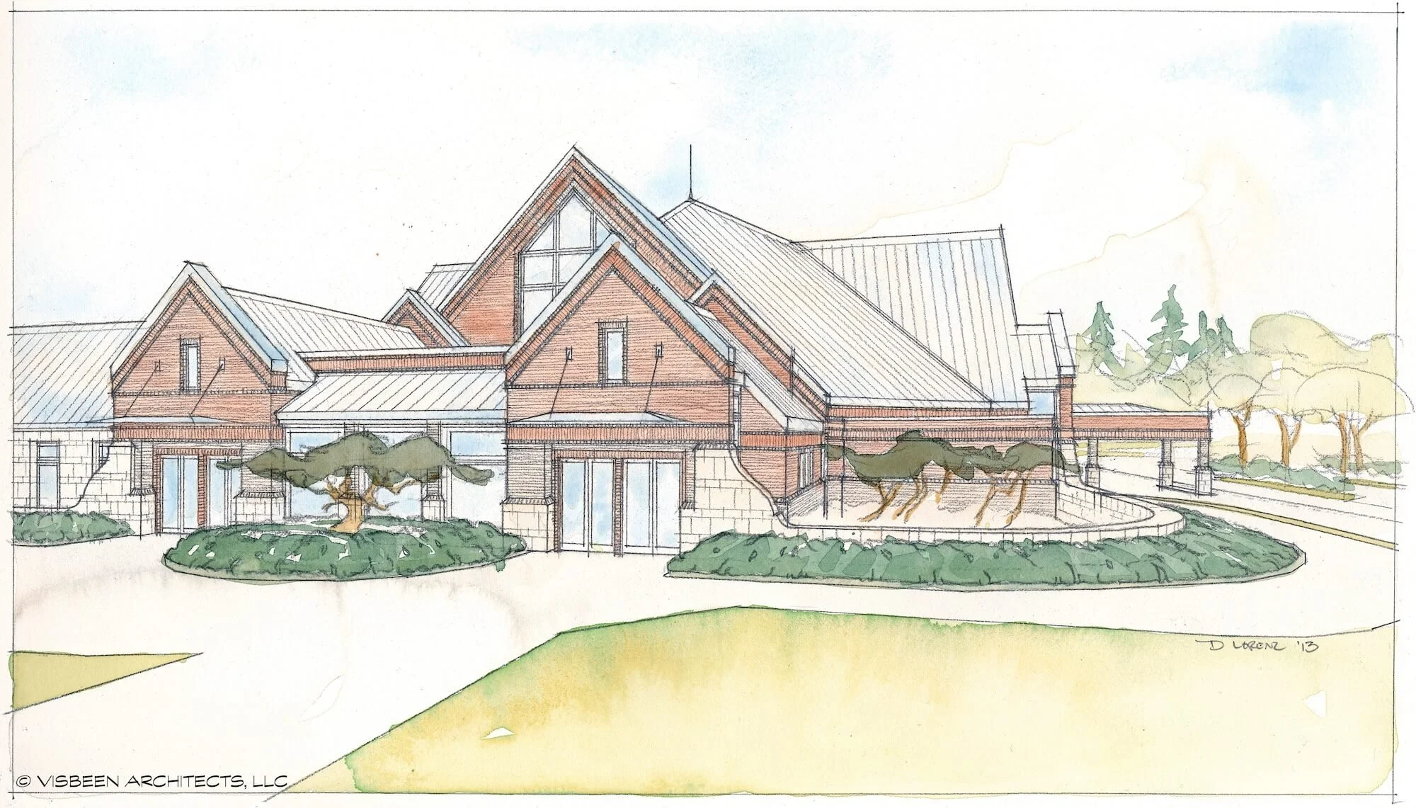 Strategically located at the southeast corner of the campus, the chapel is highly visible from East Beltline traffic, replacing the bookstore as the prominent feature of this area. This location emphasizes the importance of communal worship and aligns with the university's master plan. The landscape design includes orchard-style plantings and terraced earthworks, providing outdoor gathering spaces. Garden walls define secluded areas, enhancing the entry sequence and preparing visitors for worship.