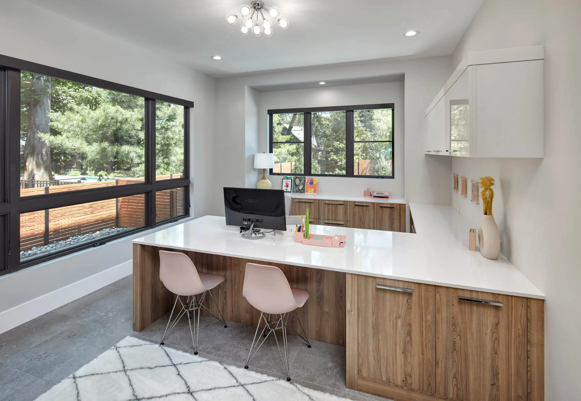 The Bainbridge is a standout home design. This transitional, contemporary home blends elements from each style to create a stunningly unique hybrid focused on elegance, ingenuity, and family-friendliness. It features clean lines that are signature to the contemporary style while also capturing the airy feel of transitional architecture. A multitude of windows throughout the home create bright spaces. The stacked stairs are a defining design element, giving the house a floating feel.