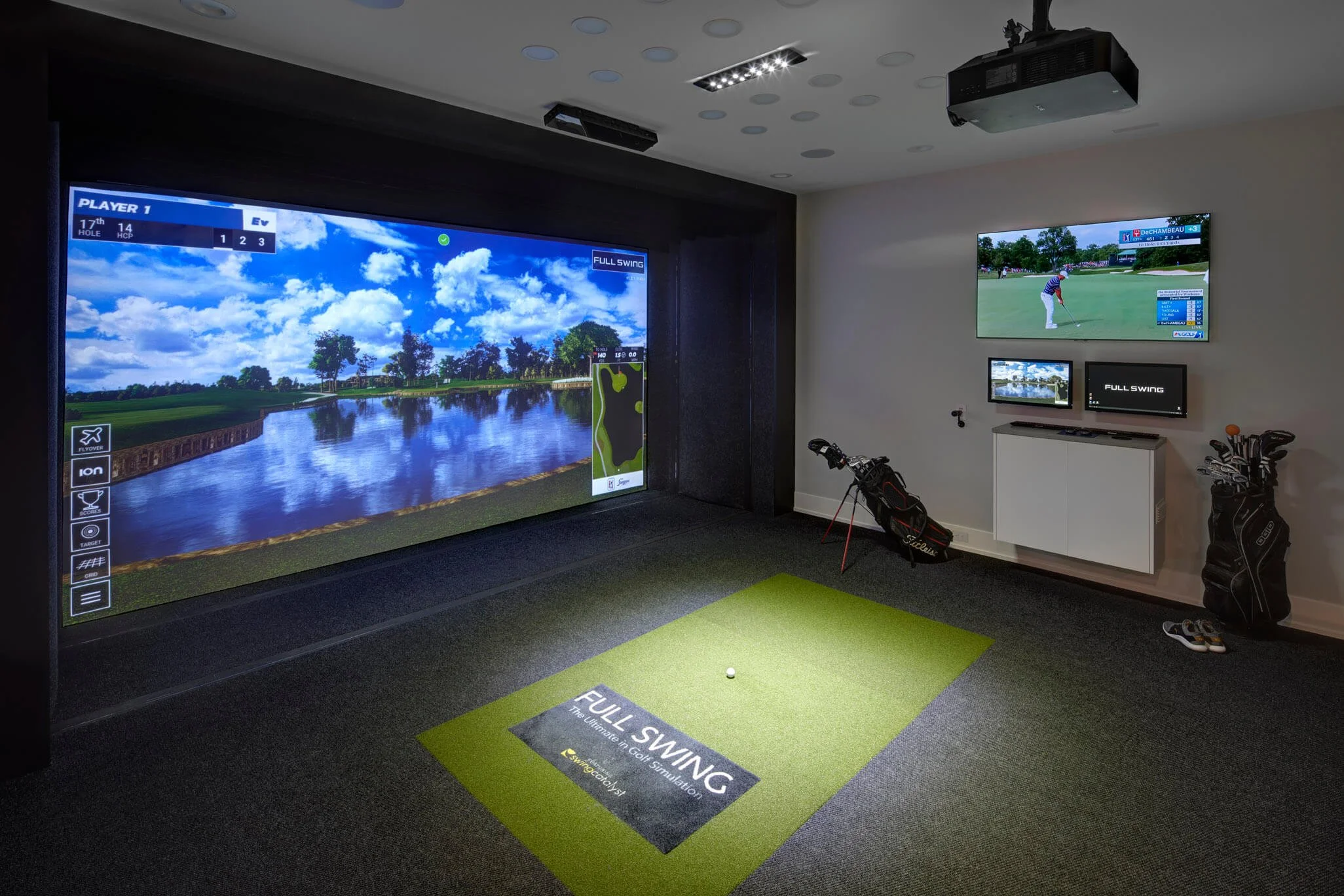 Bainbridge also features extensive entertaining spaces. The main level utilizes Phantom Screens and a built-in Napoleon grill, which is useable year-round because it is inside the screened porch. The lower level includes another kitchen, more play spaces, and a golf simulator. The indoor and outdoor living spaces are designed for entertaining small and large groups.